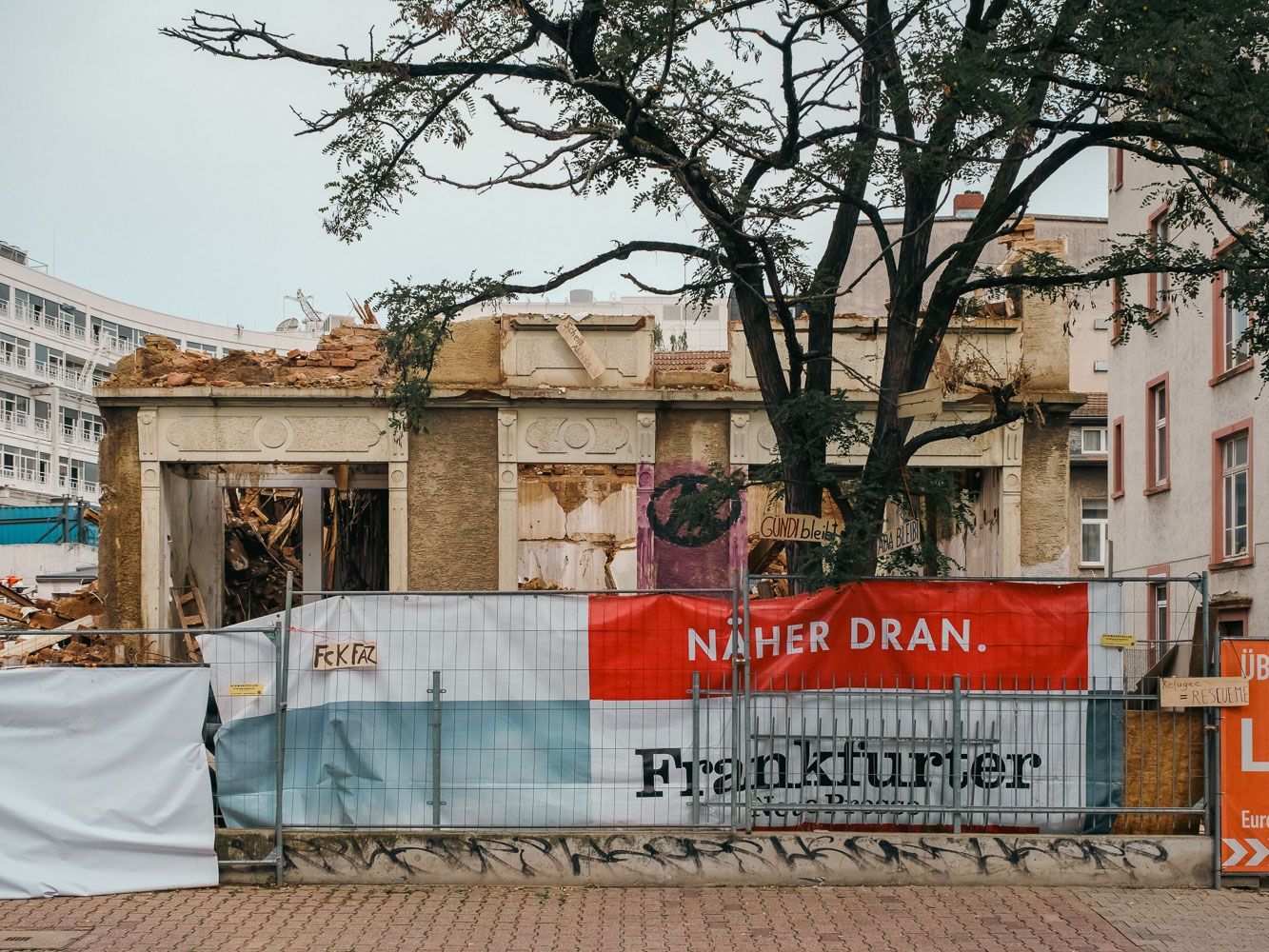 Mit Siebdruckkunst von Michael Bloeck und meinen fotografischen Bildern thematisieren wir den in 2023 gestarteten Abriss des alten FAZ-Areals im Gallus.
