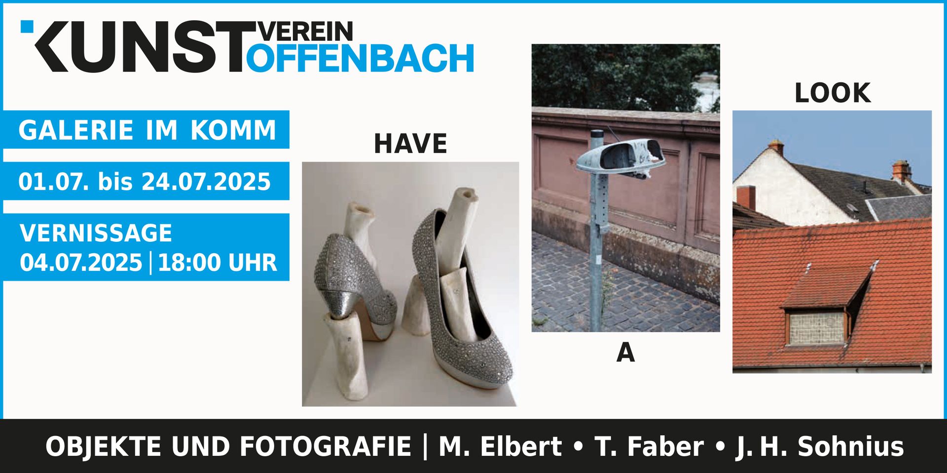 Martina Elbert bewegt sich mit ihren Objekten im Genre der Objets Trouvés mit denen sie einen psychoanalytischen Blick auf gesellschaftspolitische Strömungen wirft. Thorsten Faber und Jan Henrik Sohnius zeigen mit ihren Fotografien auf unterschiedliche Art ihr spontanes Erstaunen über Groteskes im Alltäglichen. Alle drei vereint das Ausstellungsmotto sowie die Aufforderung „Have a Look“.