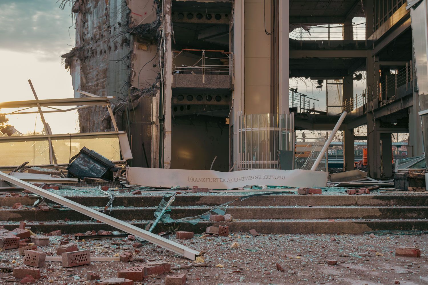 Die ehemaligen Gebäude der “Frankfurter Allgemeinen Zeitung“ im Frankfurter Gallus werden seit dem Sommer 2023 abgerissen. Eine Epoche geht zu Ende, in der dieses „Druckerviertel“ das Frankfurter Gallus geprägt hat. Wer ist nicht alles durch die Eingangstür der „FAZ“ gegangen? Welche Gedanken, Informationen wurden von da auf das Papier und in die Gesellschaft gebracht? Auf dem Areal, das die ehemaligen Büros und Redaktionsräume, aber auch das Verlagsgebäude sowie Wohnhäuser umfasst, sollen nach dem Abbruch die „Hellerhöfe“ entstehen, ein neues urbanes (Wohn-)Quartier im Gallus.